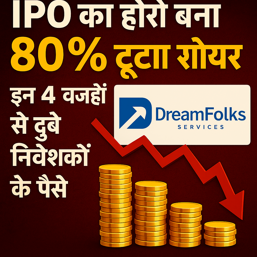 शेयर बाजार में एक बार फिर यह साबित हो गया कि हर चमकने वाली चीज सोना नहीं होती। जिस IPO को निवेशकों ने ‘हीरो’ समझकर हाथों-हाथ लिया था, वही कुछ ही समय में ‘जीरो’ बन गया। हम बात कर रहे हैं DreamFolks Services के उस शेयर की जिसने लिस्टिंग के बाद शुरुआत में जबरदस्त उछाल दिखाया लेकिन अब लगभग 80% तक गिर चुका है। इस गिरावट ने हजारों खुदरा निवेशकों (retail investors) की गाढ़ी कमाई को पानी-पानी कर दिया।